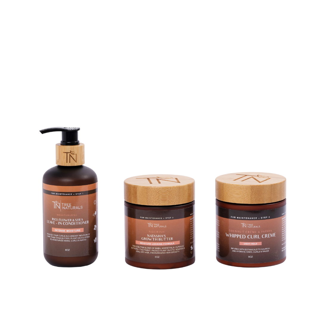 Since natural hair is prone to extreme dryness, our Tree-O Kit will help lock in and restore moisture to your hair. This is simply done by using the finest ingredients, emollient oils, butters and herbs to nourish and hydrate thirsty locks.